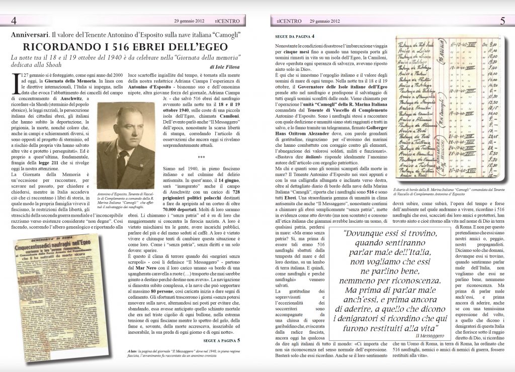 Su ordine del Gov. Delle Isole Italiane dell’Egeo, Antonino d’Esposito non esitò minimamente e partì per soccorrere quel folto gruppo di naufraghi, non risparmiandosi in qualsiasi forma di aiuto.