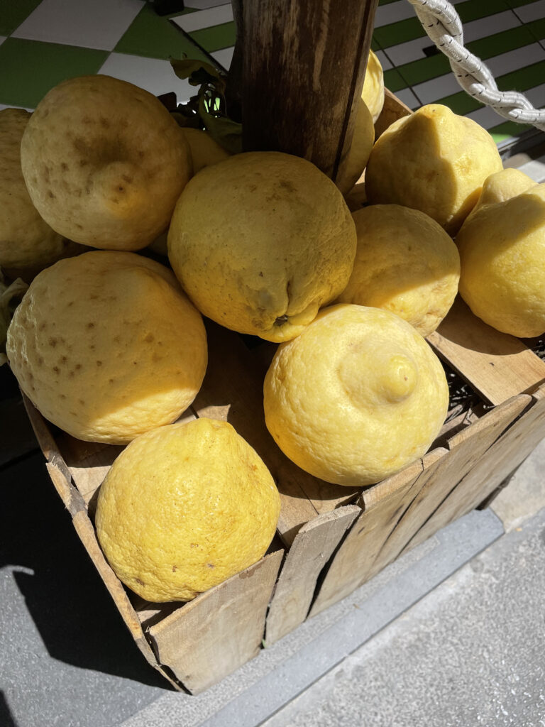 Walking down the streets of Sorrento, Capri, and Amalfi there is a flood of vibrant lemon patterns, lemons the size of some people’s heads, and limoncello.