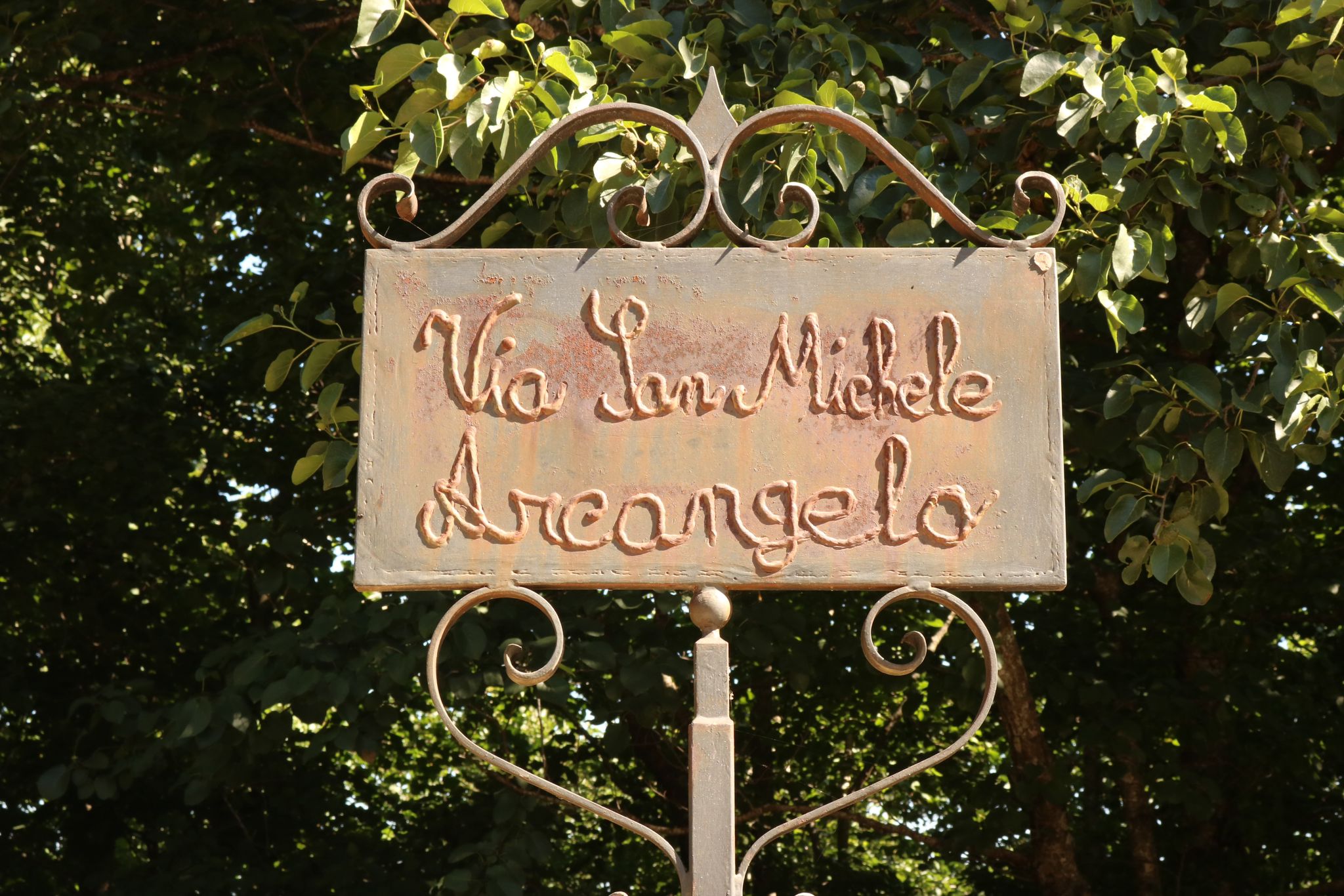 This Latin phrase translates to “Who is like God,” therefore appearing on many images of San Michele.