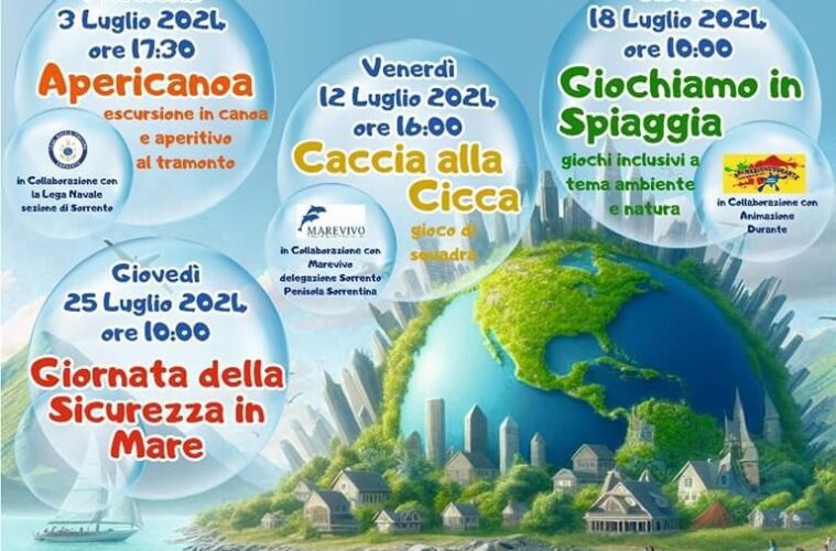 • Venerdì 12 Luglio alle ore 16:00 è previsto il gioco di squadra Caccia alla cicca, in collaborazione con Marevivo delegazione Penisola sorrentina;
