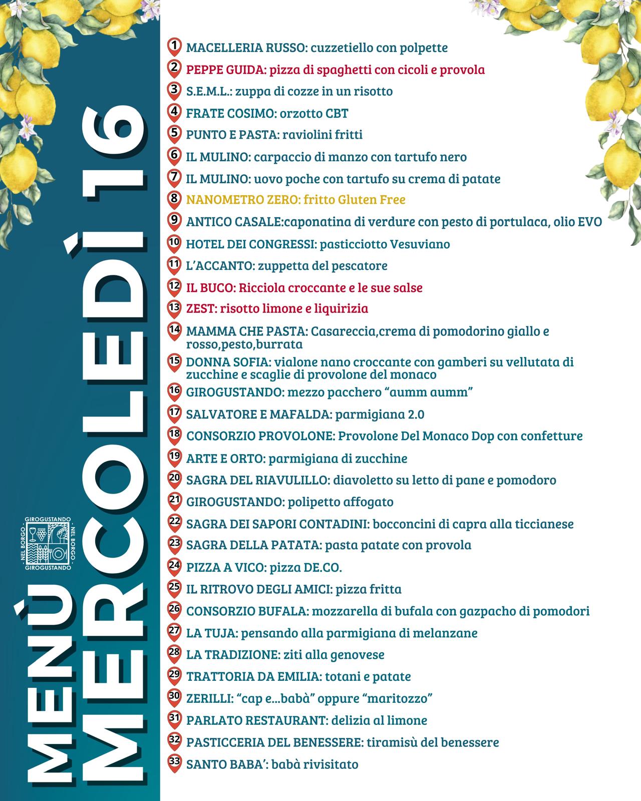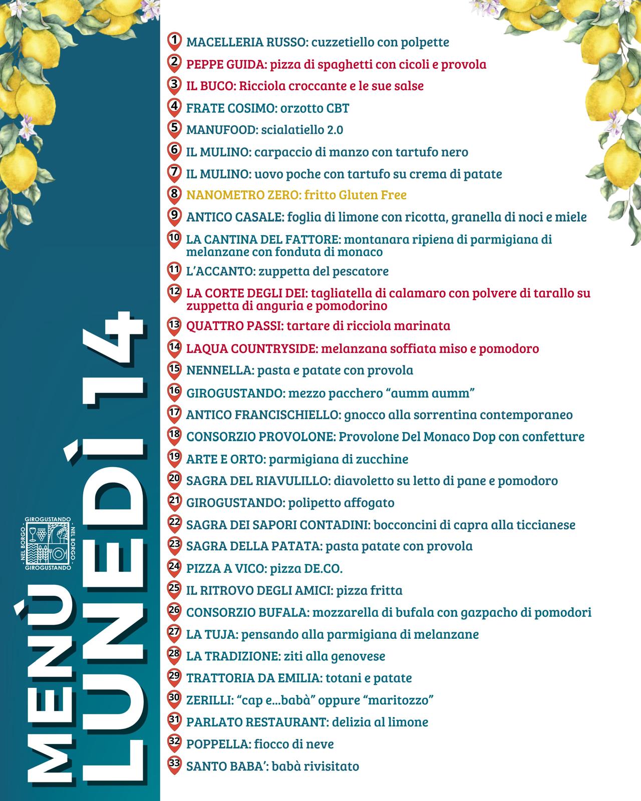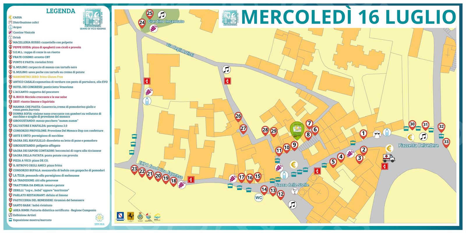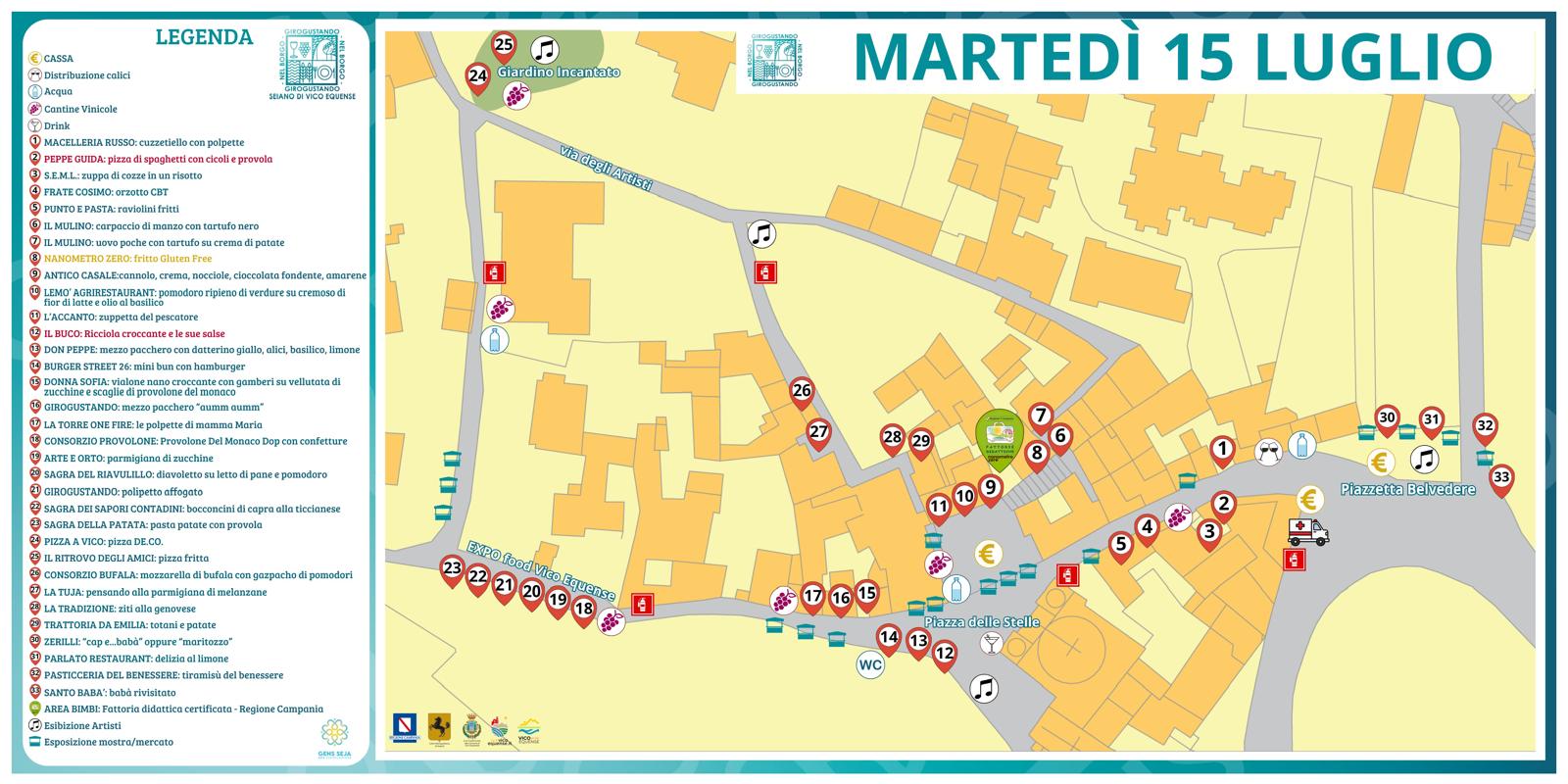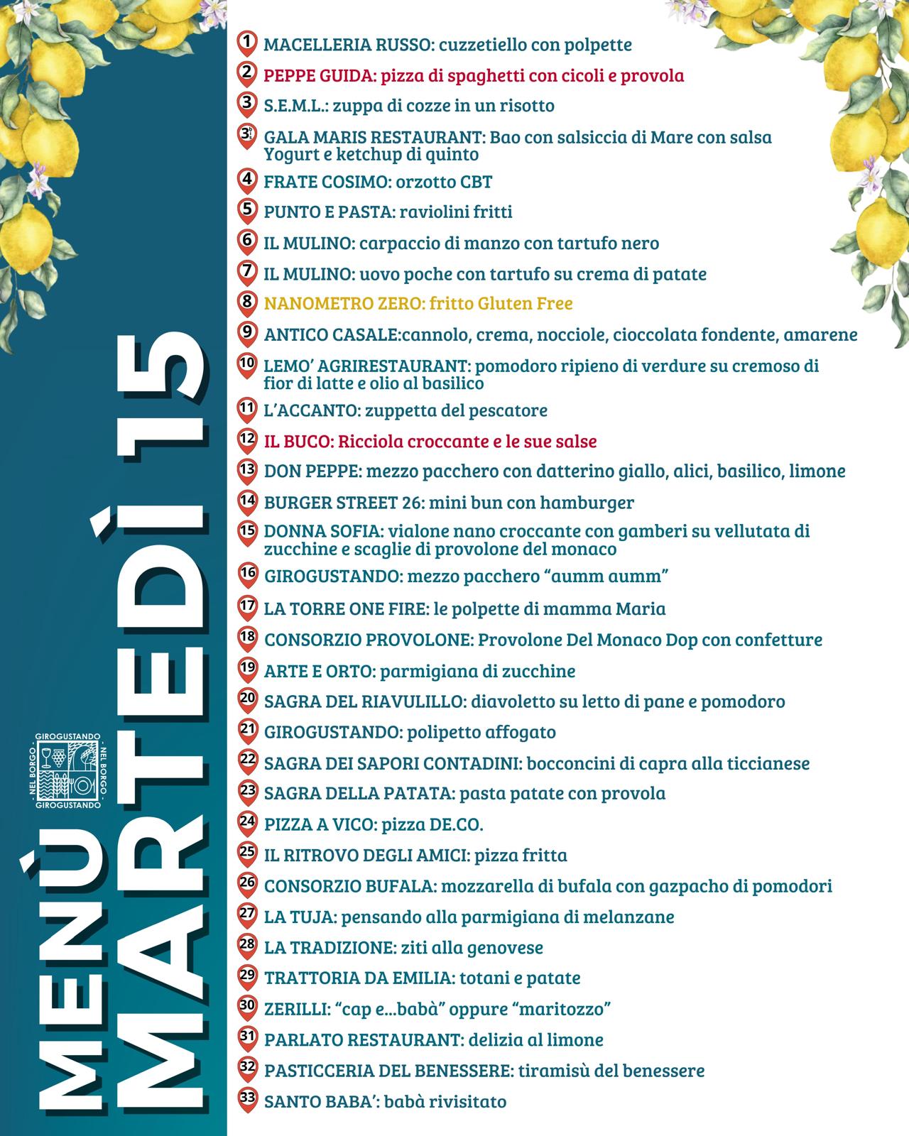 Il percorso di Girogustando 2025 si snoda lungo il piccolo borgo che si sviluppa tra la piccola chiesa di Santa Maria Vecchia (antistante il Grand Hotel Angiolieri e la pizzeria Saporì) e la chiesa parrocchiale di San Marco Evangelista.