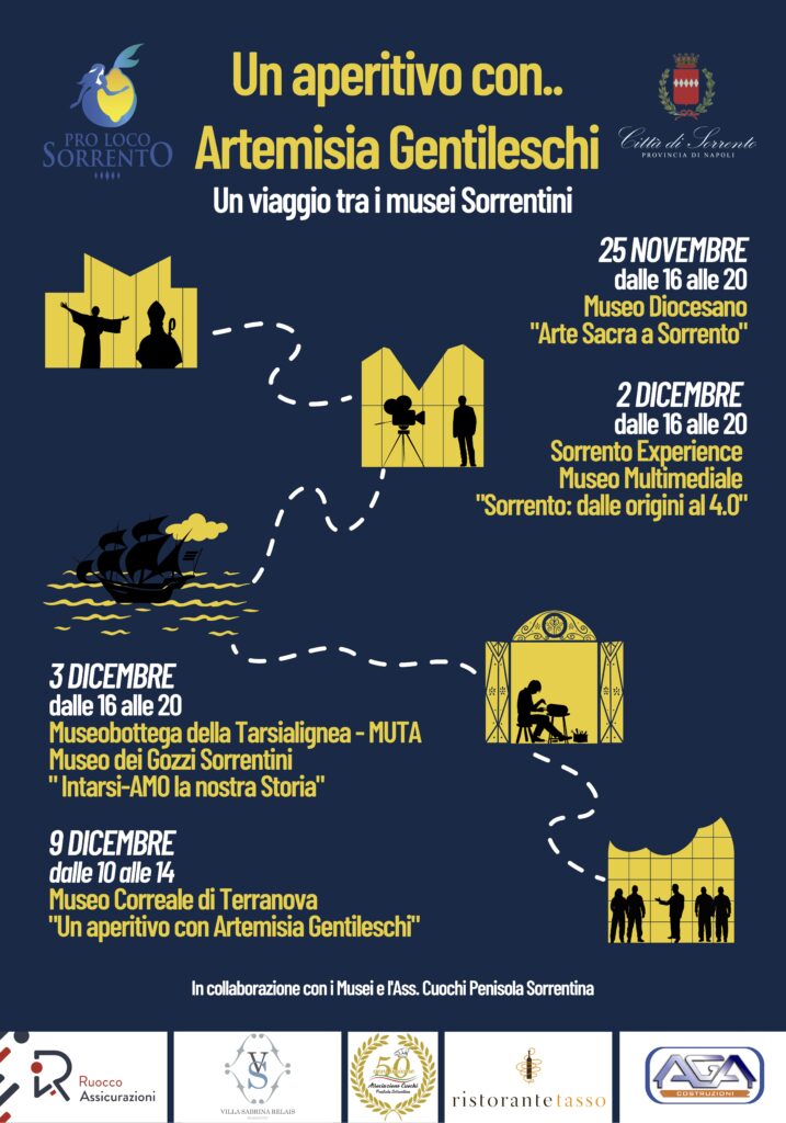 Nell’ambito della manifestazione “M’Illumino d’Inverno – edizione XIV” l’Associazione Pro Loco Sorrento organizza un ciclo di quattro incontri denominato “Un Aperitivo con Artemisia – Un viaggio tra i musei sorrentini“.