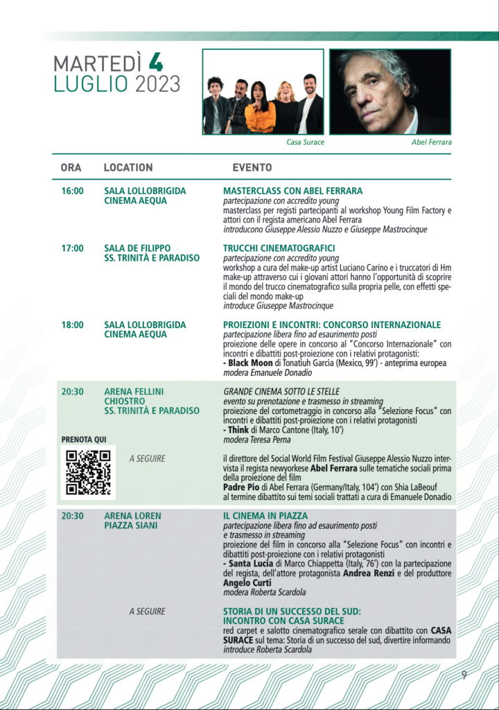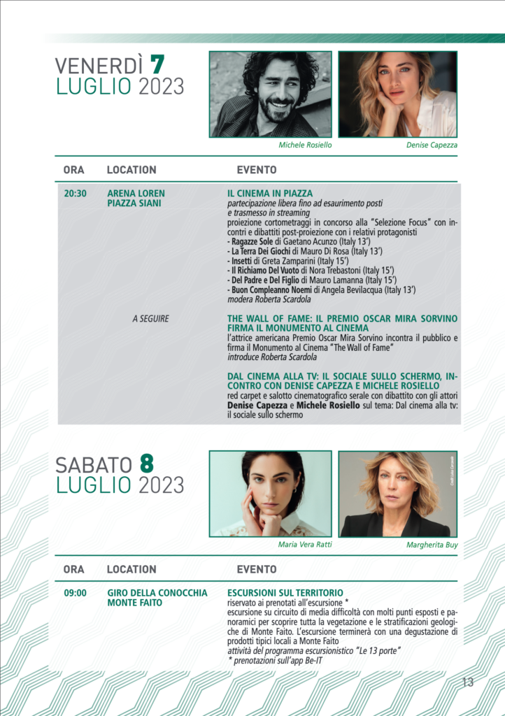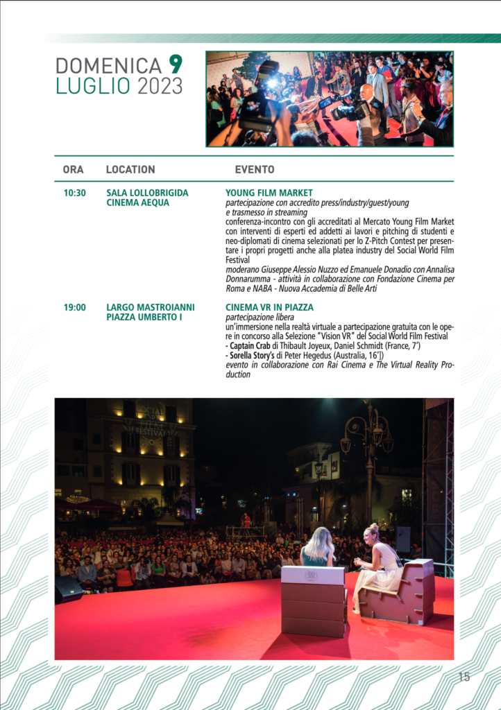 dal 2 al 9 Luglio 2023, Vico Equense ospita la tredicesima edizione del Social World Film Festival, la kermesse cinematografica dedicata al cinema quale veicolo di messaggi sociali.