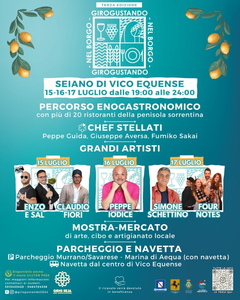 Cibo, artigianato e spettacoli a Seiano con la terza edizione di “Girogustando“, il 15, 16 e 17 Luglio 2025.