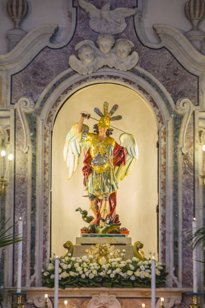 Tuttavia, il simbolo per eccellenza della devozione popolare è certamente la settecentesca statua lignea dell’Arcangelo.